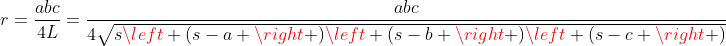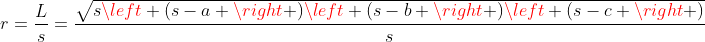 Rumus panjang jari-jari lingkaran dalam segitiga adalah